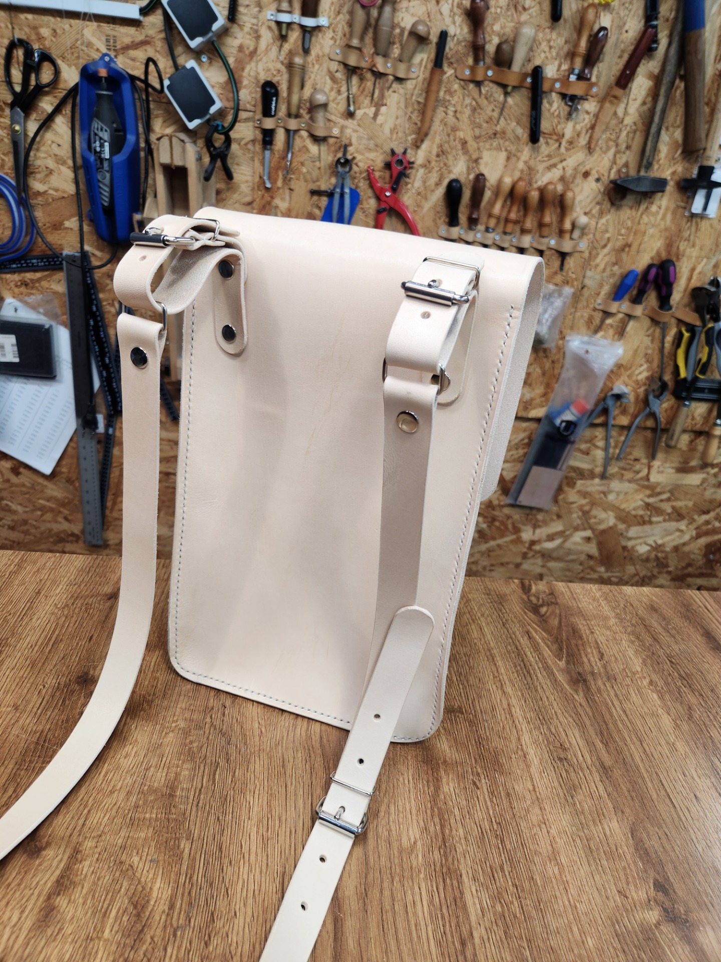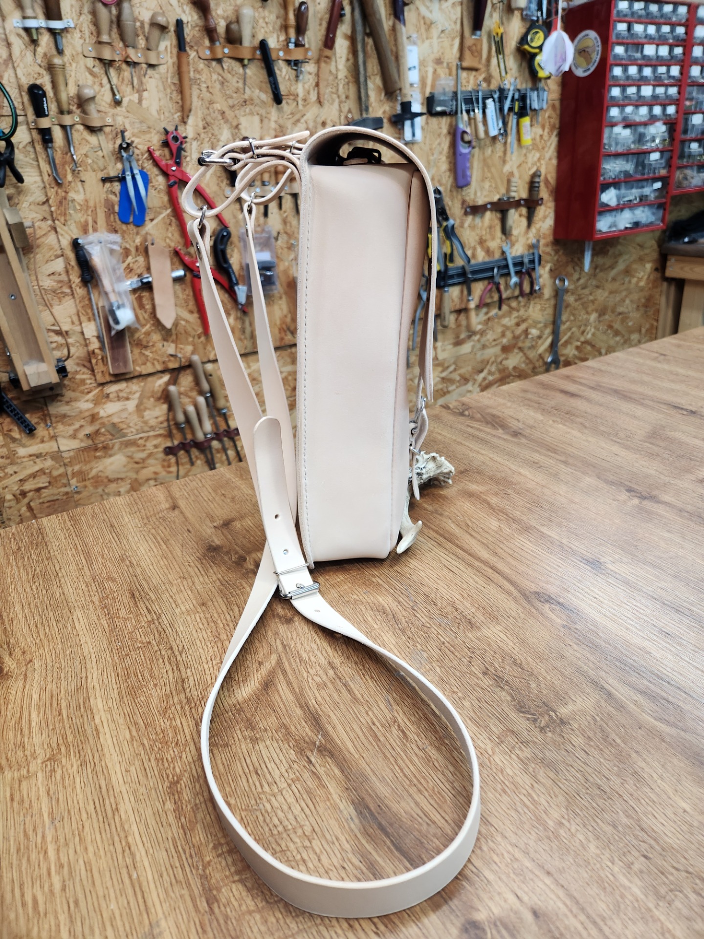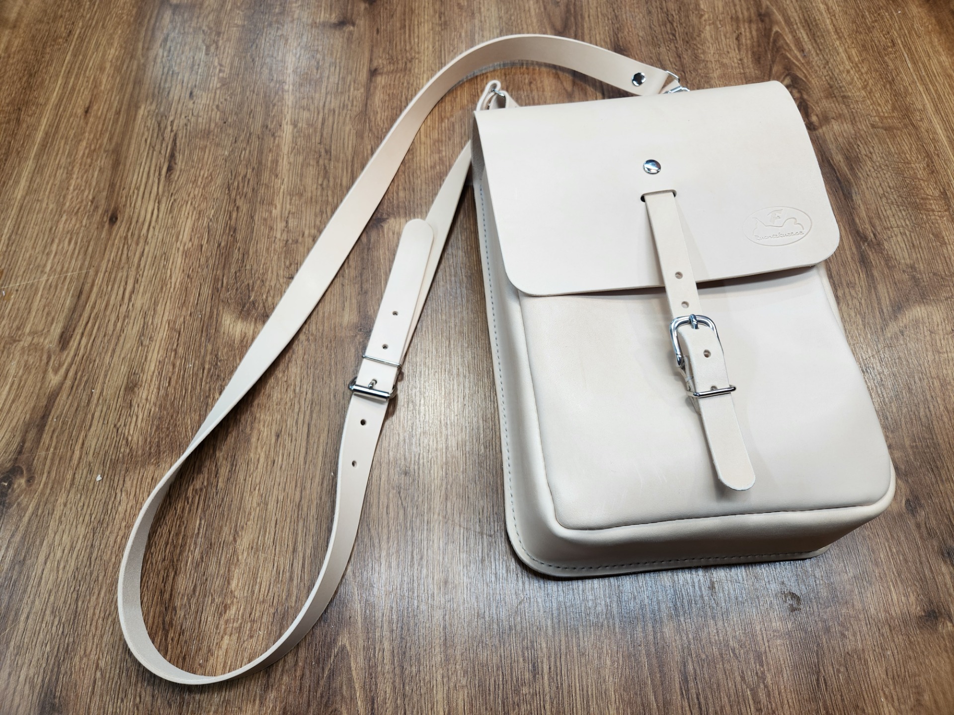 Poctivá ručně vyráběná a ručně šitá kožená brašna inspirovaná tradičními lesnickými brašnami, kterým se s úsměvem říkalo "brašna na tři piva".